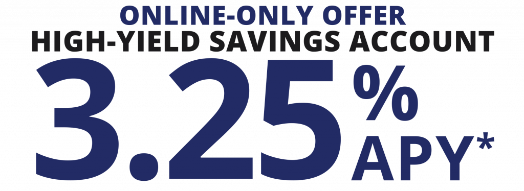 ** As of 03/03/2026, Annual Percentage Yield (APY) of 3.25% on balances of $1,000 or more; APY of 0.10% on balances greater than $9.99 but less than $1,000. $1,000 is required to open the account. Online account opening only. Applicable for consumers only. Rate may change at any time without notice. Fees could reduce earnings.
