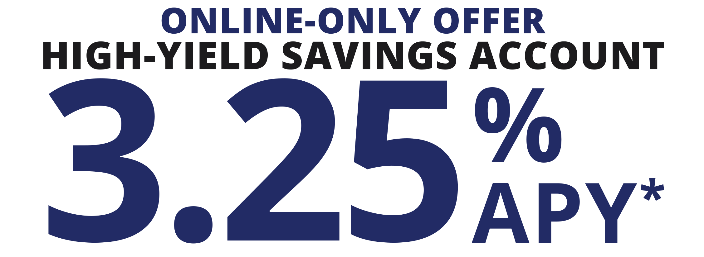 ** As of 03/03/2026, Annual Percentage Yield (APY) of 3.25% on balances of $1,000 or more; APY of 0.10% on balances greater than $9.99 but less than $1,000. $1,000 is required to open the account. Online account opening only. Applicable for consumers only. Rate may change at any time without notice. Fees could reduce earnings.